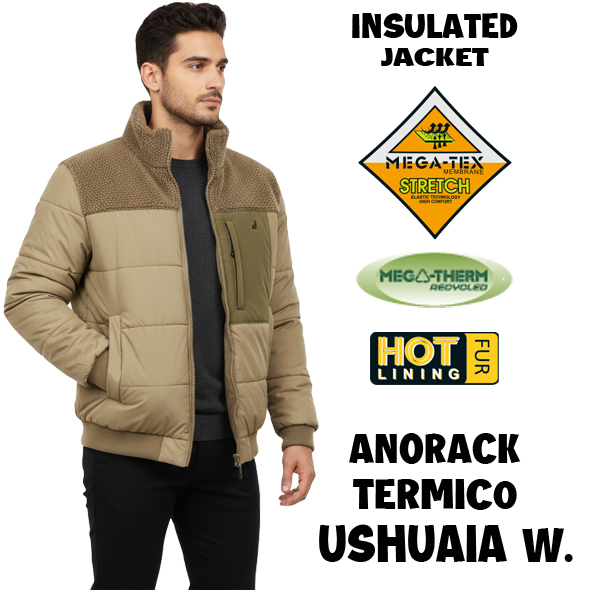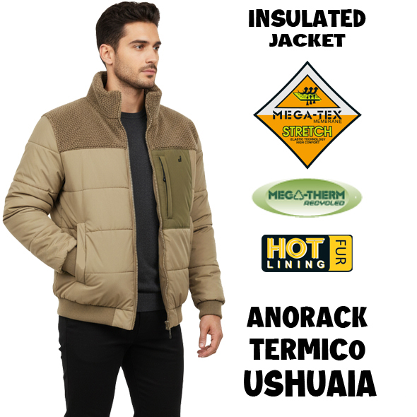 El Ushuaia combina la calidez del tejido sherpa con la protección de materiales técnicos, creando una prenda perfecta para el frío y la vida al aire libre. La suavidad del sherpa en los hombros y el cuello aporta un confort excepcional, mientras que su construcción con tejidos reciclados refuerza un compromiso sostenible con la naturaleza.
