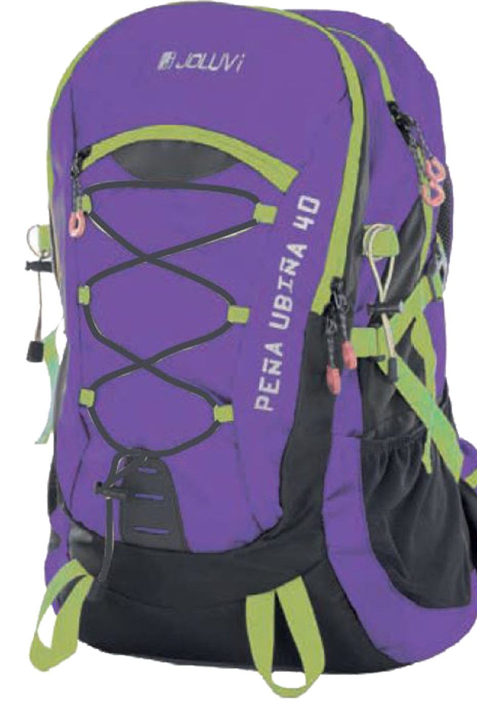 - Laterales: Dos bolsillos de rejilla para llevar botellas.